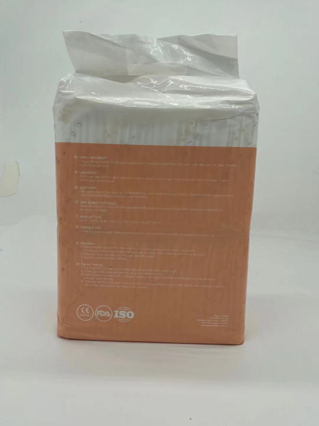 Product specifications: -The pet diaper can be folded into a small size, compact and light, and easy to carry.-Strong absorption capacity Pet diapers have super absorption capacity, which can prevent pet urine from flowing around.-Disposable pet diapers are interspersed, which is easier to clean and use. 50 pieces A pack contains 50 pet diapers, which can meet your pet‘s daily needs within a period of time. Applicable scope Pet diapers can be widely used in pet bags, pet houses, pet boxes, pet cages, floors, bathrooms, etc., designed to take care of your pets.Type: Pet changing pad Quantity: 50 pieces Material: non-iron fabric + perforated PE film Color: Blue PinkNet weight: 1454g / 3.2lb bag :50 *Pet changing pad**SPECS**Current sizes available: Small: 33x45cm (100pcs/pkt)medium : 45x60cm (50pcs/pkt)Large : 60x60cm (40pcs/pkt)X-large: 60x90cm (20pcs/pkt)Adult Blue Colour :60x90cm(10pcs/pkt)