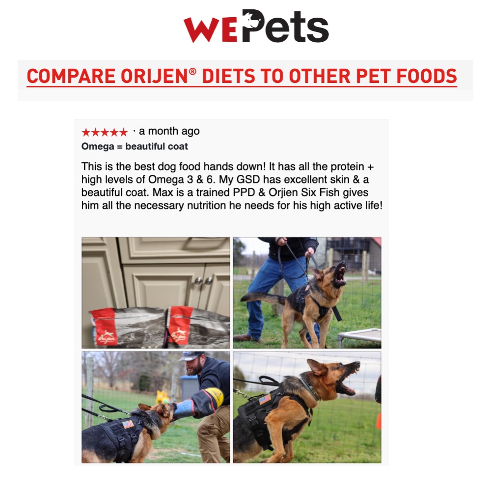 Help your pet thrive with the power of protein-rich recipes that nourish as nature intended. Dogs are ancestral carnivores, so their Biologically Appropriate diet is rich and varied in whole animal ingredients. ORIJEN® Original recipe is packed with 85%* quality animal ingredients fresh or raw+like free-run chicken and turkey**, wild-caught fish, and cage-free eggs. With rich inclusions of Wholeprey animals, ORIJEN dog food is made with the most nutrient-dense, succulent parts of the prey to deliver the nutrition dogs need. The result is a diet for your canine companion that is beyond comparison.