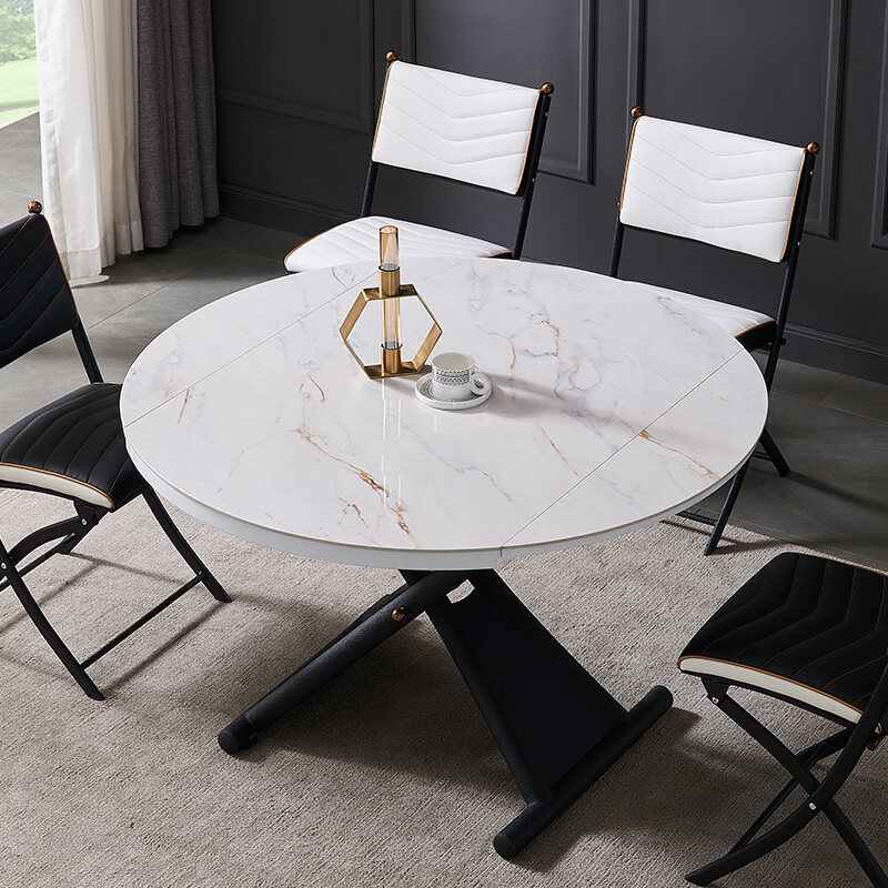 High End Stone Plate Dining Table Home Italian Style Lifting Coffee Table Double-Use Foldable round Dining Table for Small Apartment