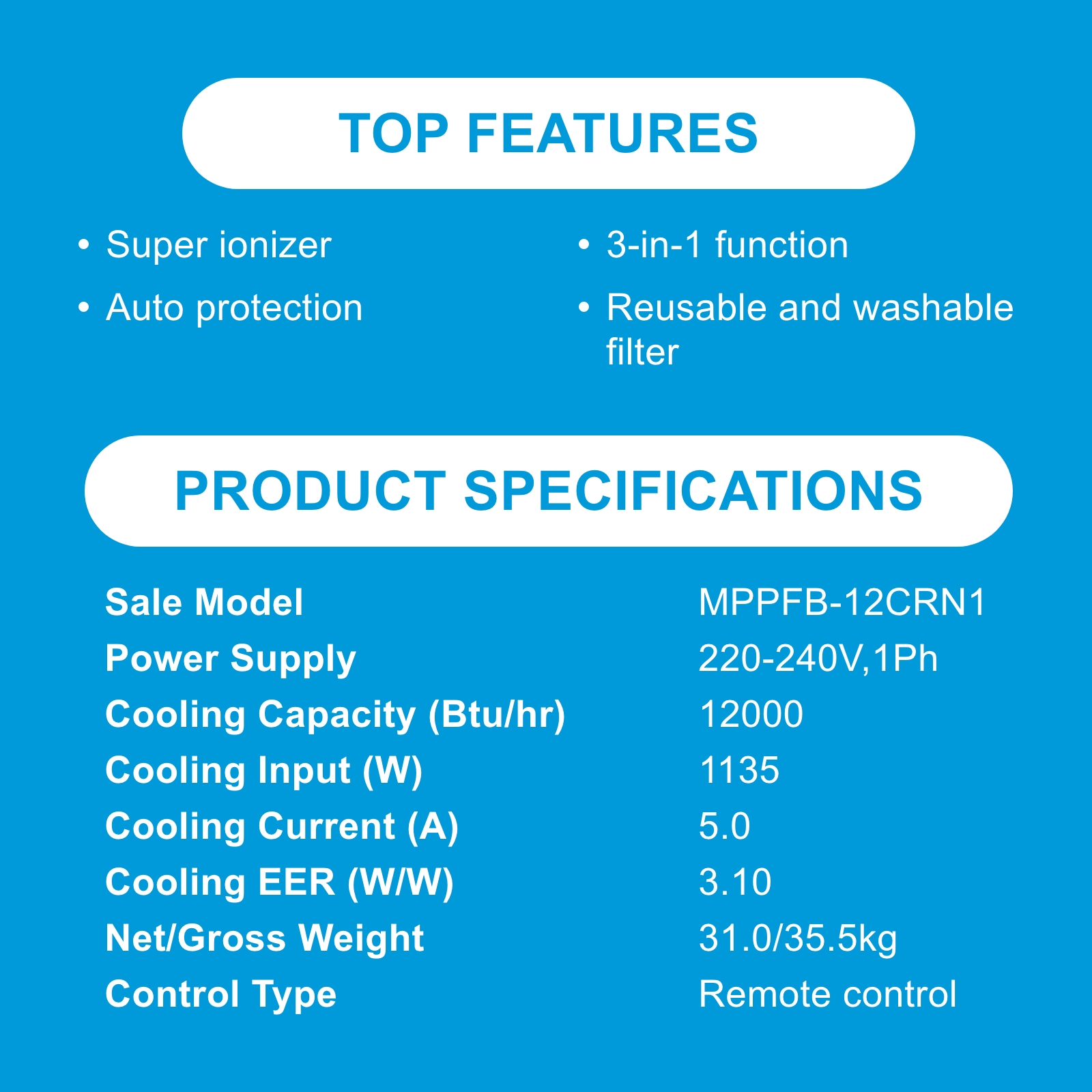 Midea MPPFB-12CRN1 Portable Air Conditioner, 12000BTU