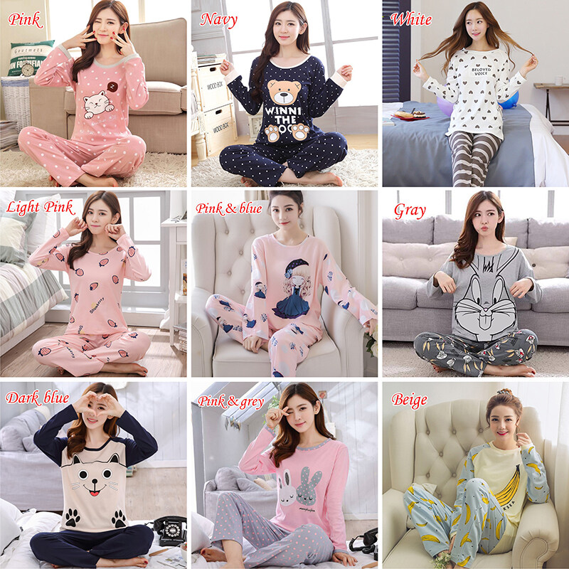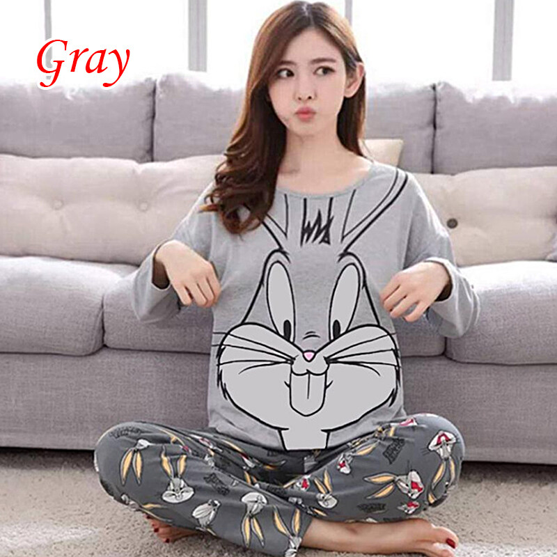 banchen Two Piece Cartoon Sleepwear Nightgown Cute Printed Pajamas Set Long Sleeve Pajamas Homewear Ladies Autumn Winter