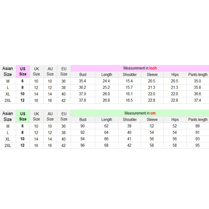 Size: 2XL, Bust: 96cm, Length: 68cm, Shoulder: 42cm, Sleeve: 58cm, Hips: 58cm, Pants length: 95cm