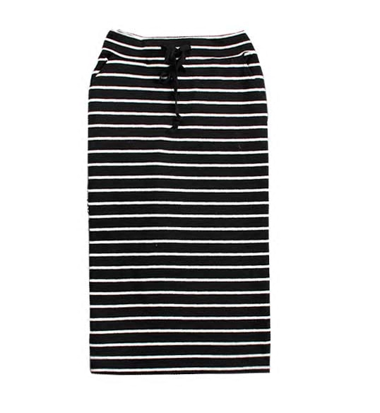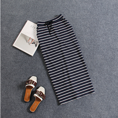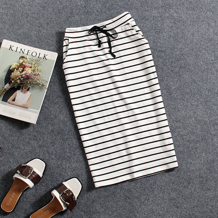2023 Korean Style Summer New Black and White Striped Casual Pocket Medium Long Sheath Pencil One-Step Skirt Skirt for Women