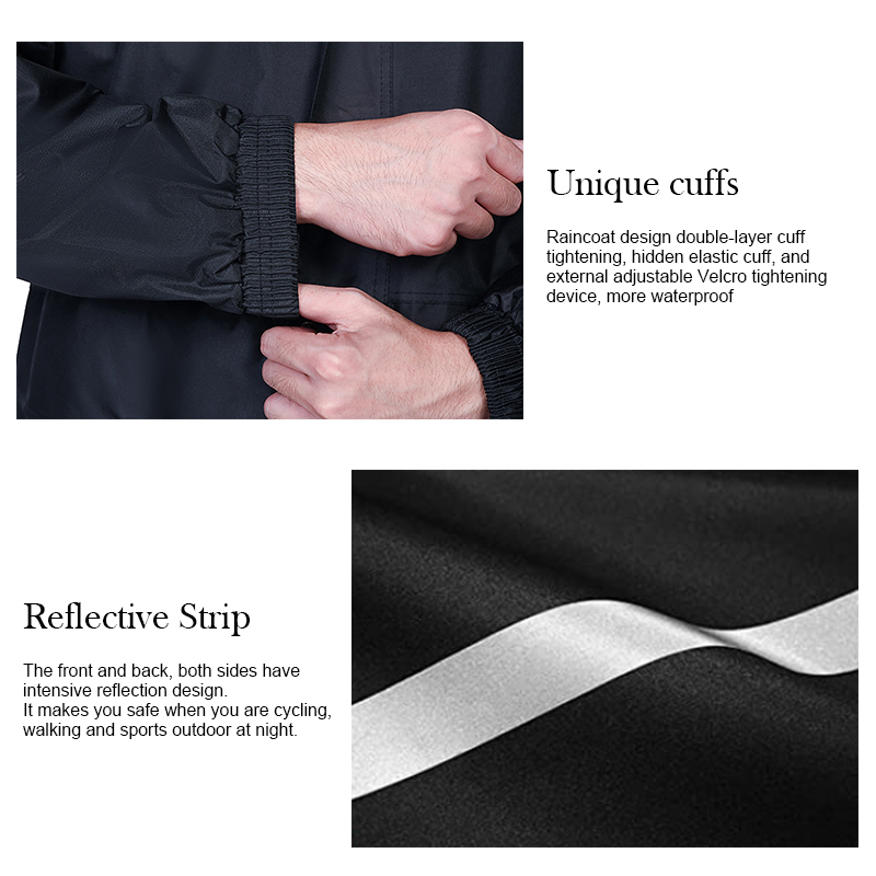 ?? Fast Delivery Split Reflective Tape Cycling Bicycle Travel Hiking Camping Outdoor Adult Raincoat Set Waterproof Breathable Anti-sweat Unisex Cycling Clothing Equipment Reflect Hooded Outdoor Rainwe