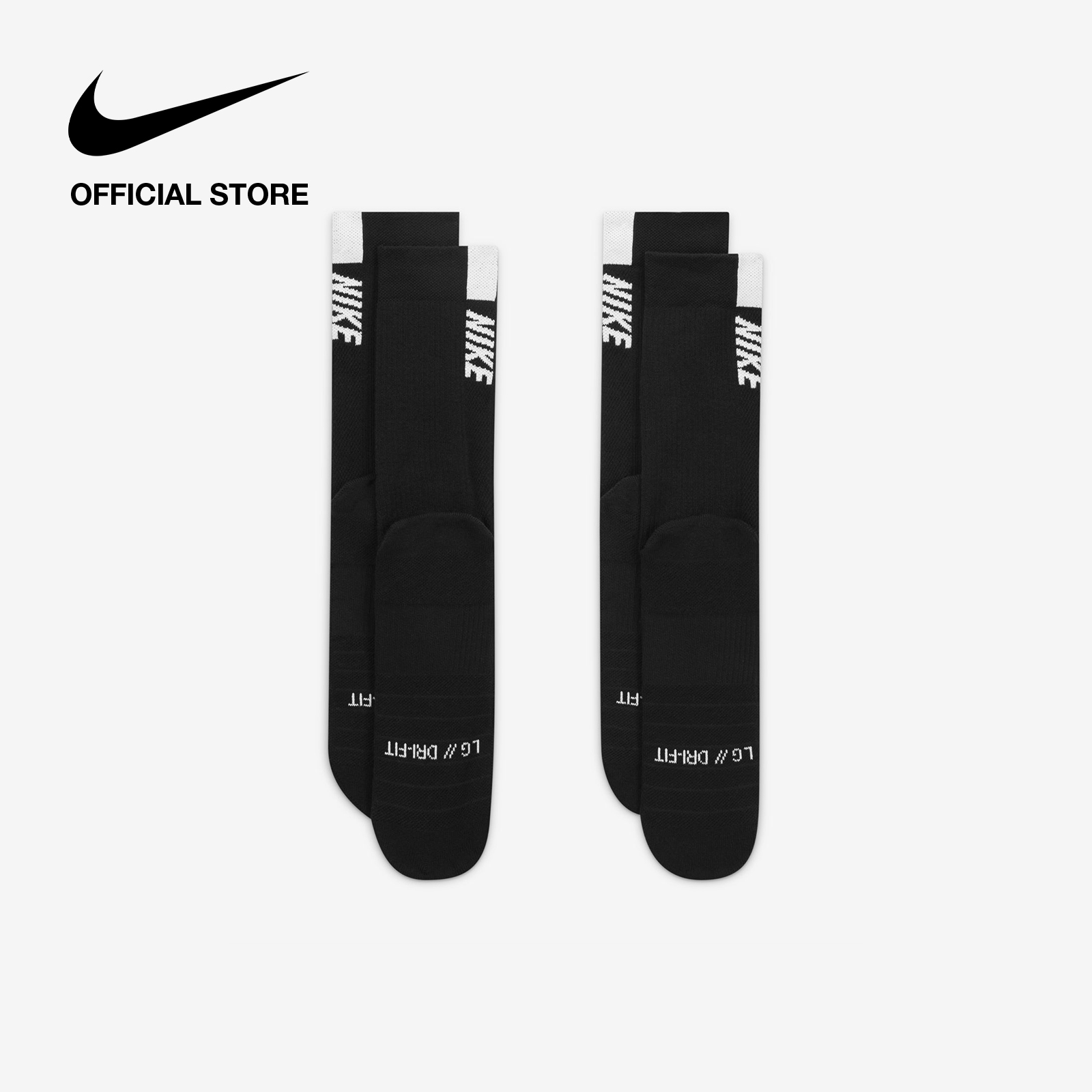 Run tall in the Nike Multiplier Crew Sock (2 Pairs). Sweat-wicking fabric helps you stay dry and cool, while mesh along the midfoot gives you breathability. A linear "NIKE" logo stands out as you run.