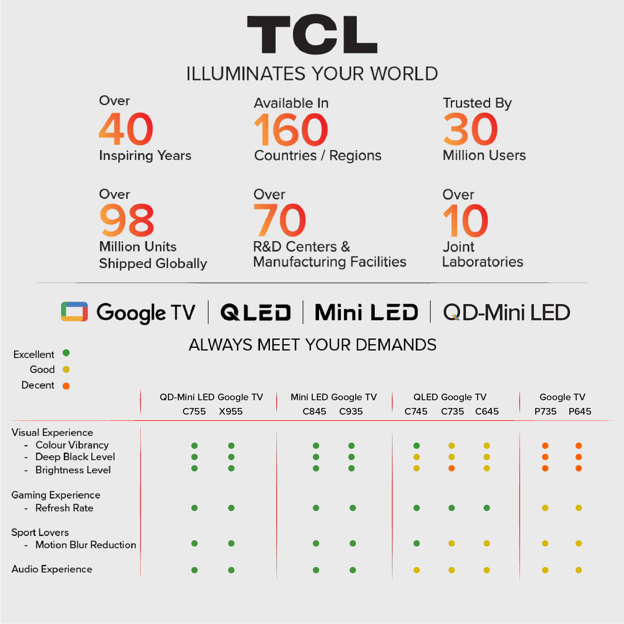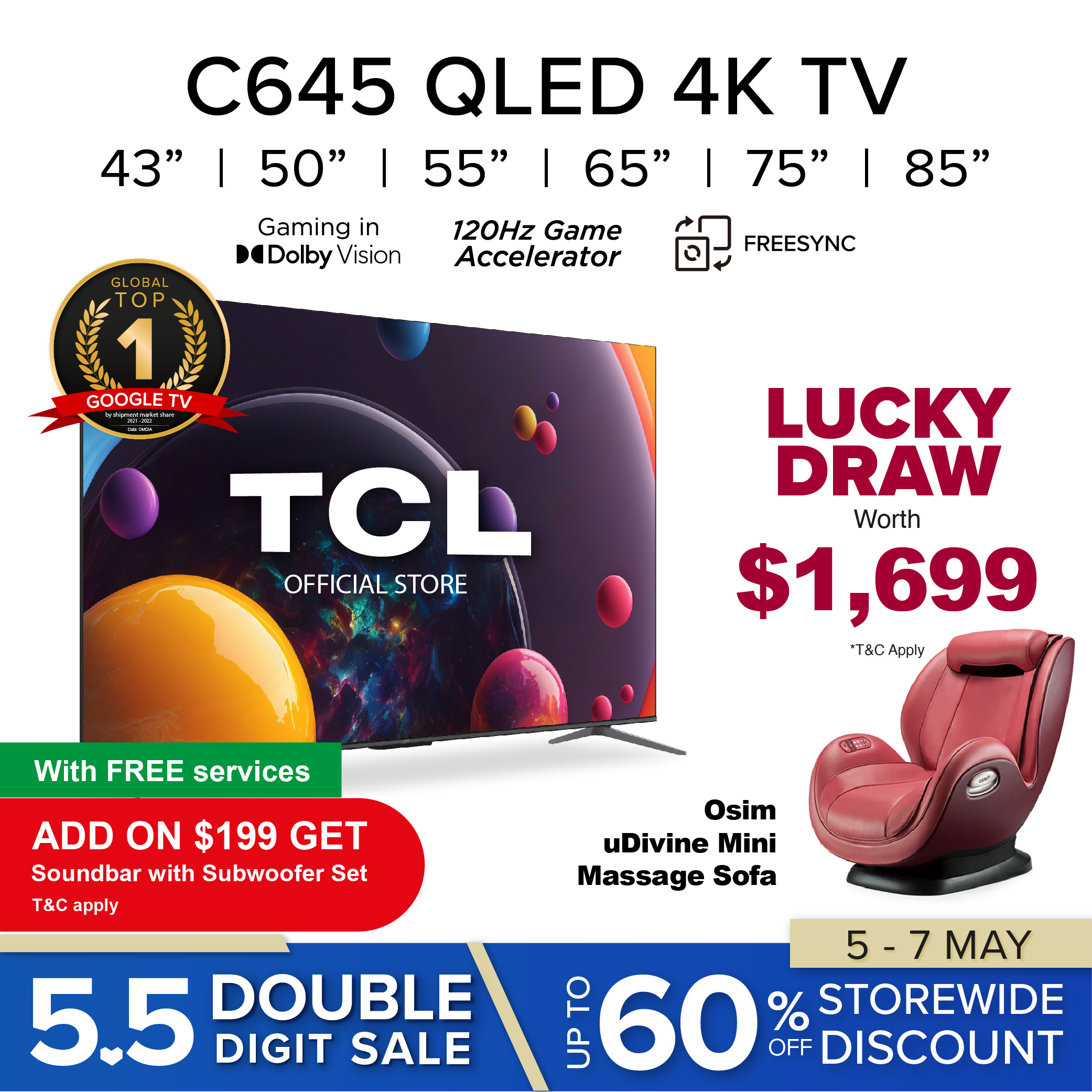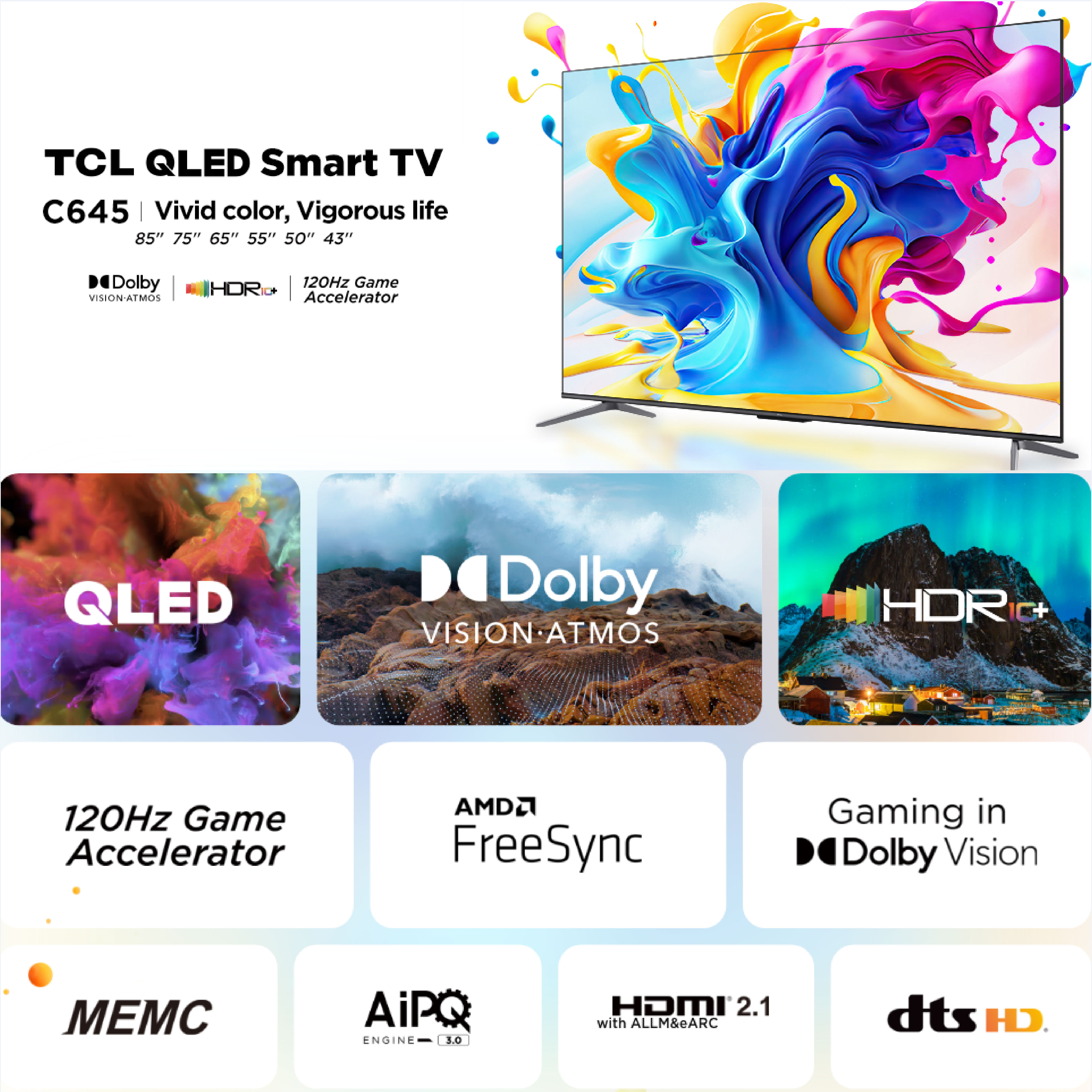 TCL C645 QLED 4K Google TV Android TV 43 50 55 65 75 85 inch | Wide Color Gamut | Dolby Vision & Dolby Atmos | 120 Hz DLG | HDMI 2.1 | Google Duo