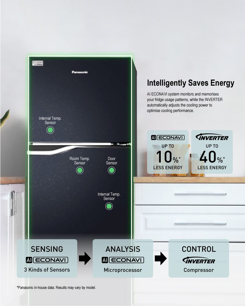[bulky] PANASONIC NR-TX461CPKS 405L 2 DOOR FRIDGE (SPARKLING BLACK) ENERGY LABEL: 3 TICKS |1 YEAR WARRANTY BY PANASONIC