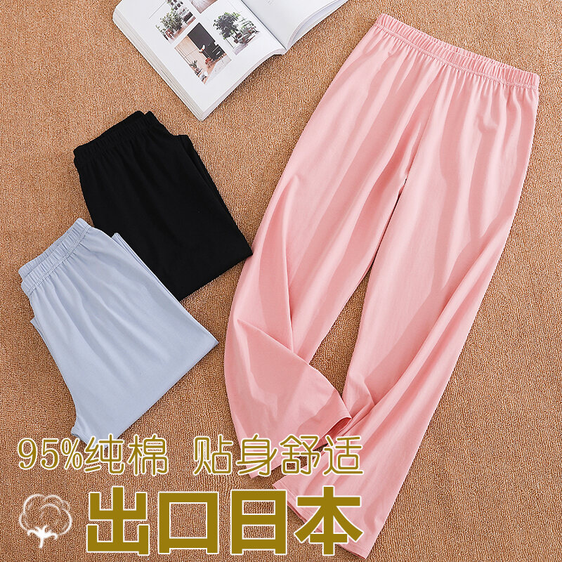 Purified Cotton Pajama Pants Women's Spring, Summer and Autumn Solid Color Casual Trousers Thin Air Conditioning Pants Loose plus Size Can Be Worn outside Home Pants