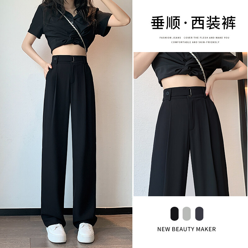 YIGE 2023 New High end Suit Pants for Women in Spring and Summer: Slim and Slim, Straight, Narrow, Wide Leg Pants for Women in Pear Shape, Floor Sweeping Pants