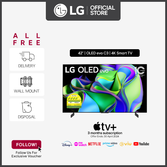 [Bulky] LG OLED42C3PSA 42'' OLED 4K C3 Smart TV + Free Wall Mount Installation worth up to $200 + Free Delivery + Free Disposal