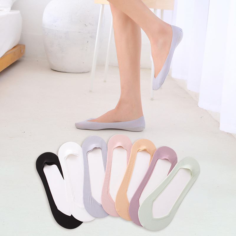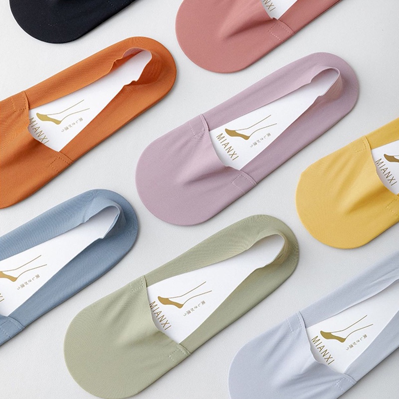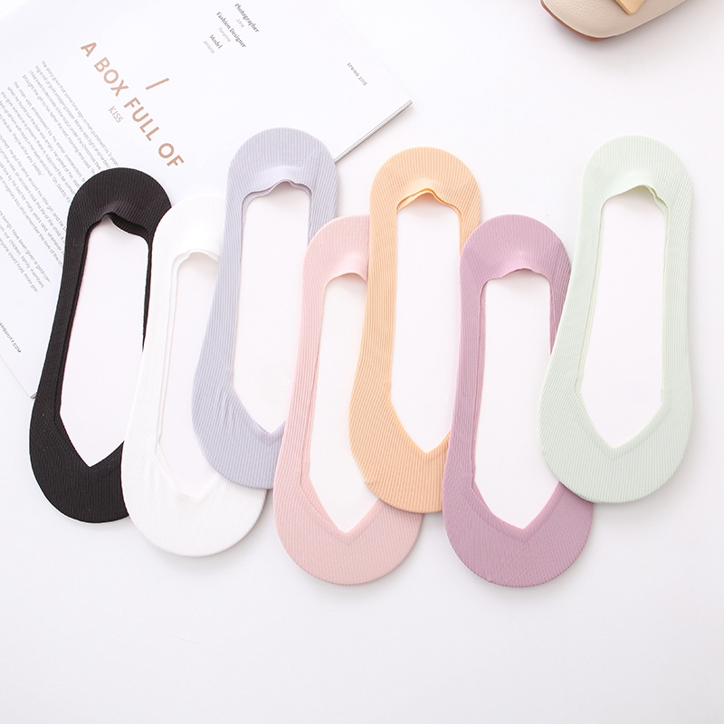 ECMLN Women Ice Silk Seamless Boat Socks Thin Silicone Non-slip Socks Ankle Invisible Socks Candy Color Ankle Cotton Socks