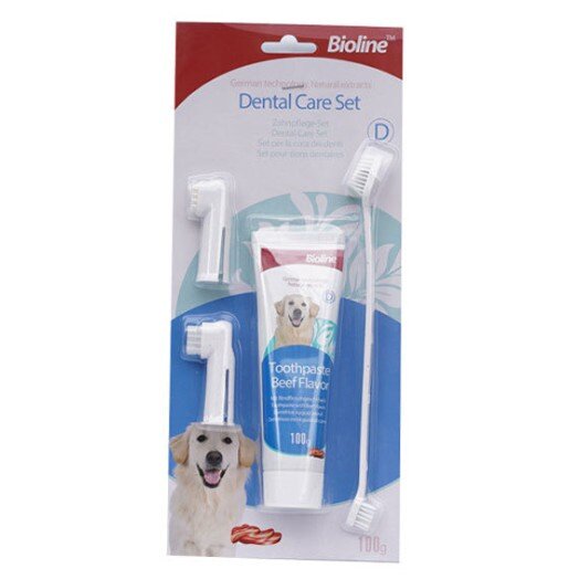 Bioline Set 4in 1 Toothpaste For Dog's Freash Breath Toothpaste odol pasta gigi Dog Toothpaste Pet Toothbrush Pet Dental Care