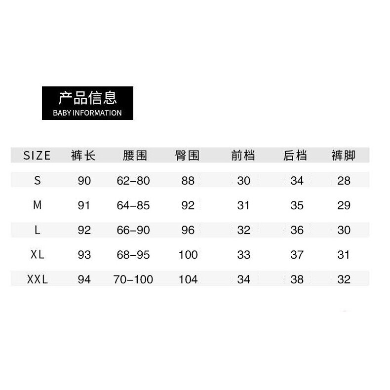 Sizet Waist(cm)t Hip(cm)t Length(cm)t Leg Opening(cm)