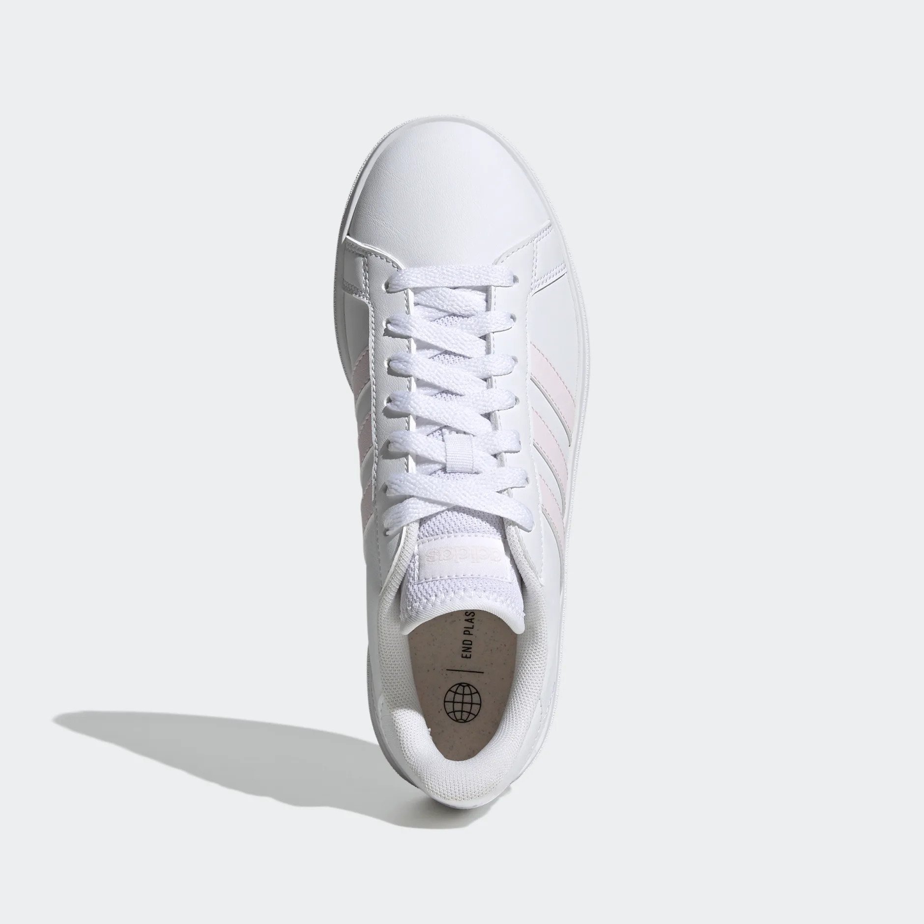 Sneakers with staying power. The adidas Grand Court shoes have been around since the '70s. Once you've upgraded to the revamped version of the classic, they'll never be far from your feet. The 3-Stripes add a sporty spin to any outfit. Made with a series of recycled materials, this upper features at least 50% recycled content. This product represents just one of our solutions to help end plastic waste.