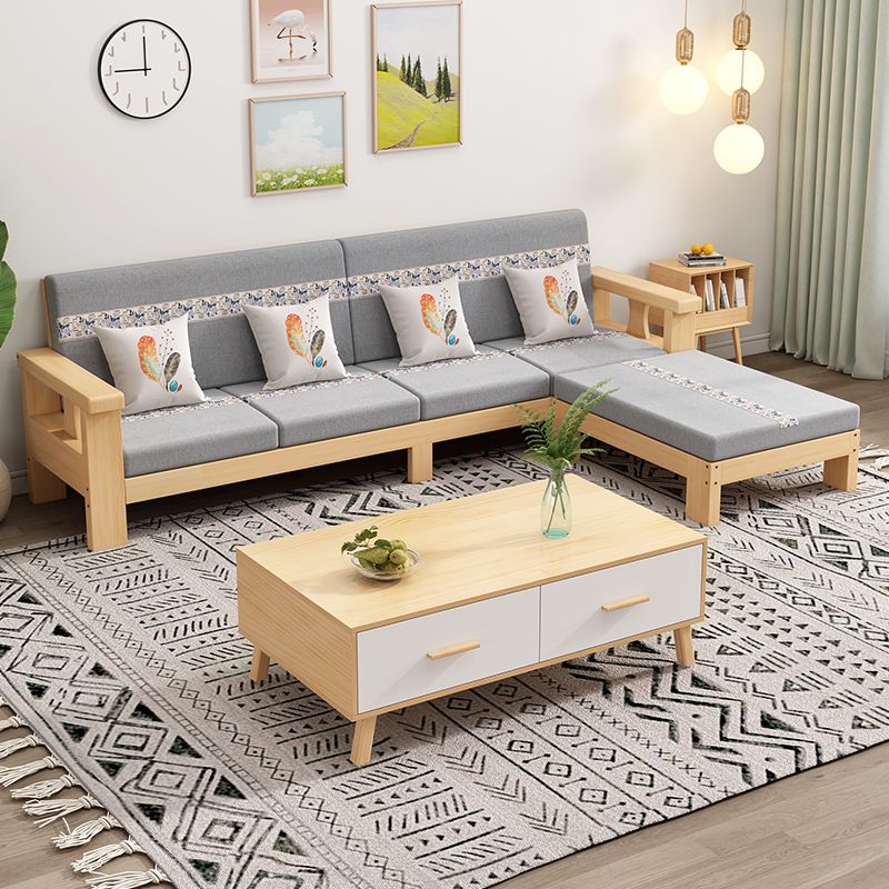 Solid Wood Sofa Simple Single Double Three Four-Seat Sofa 23 New Coffee Table TV Cabinet Sofa Combination