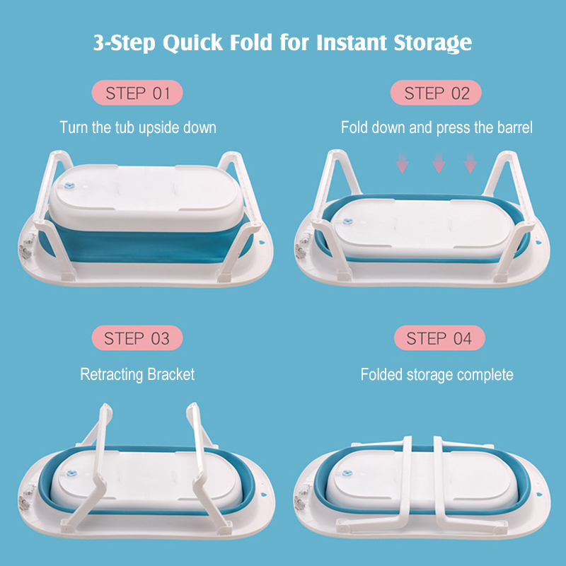 Foldable Baby Folding Bath Tub with Thermometer Collapsible Shower Basin Kids Children Newborn Bathing Bathtub Children Folding Bath Tub Convenient Storage Children Day Gifts