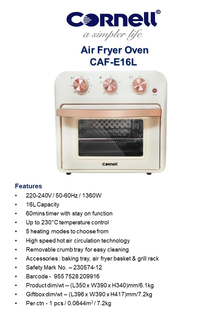 CORNELL AIR FRYER OVEN 16L CAFE16L