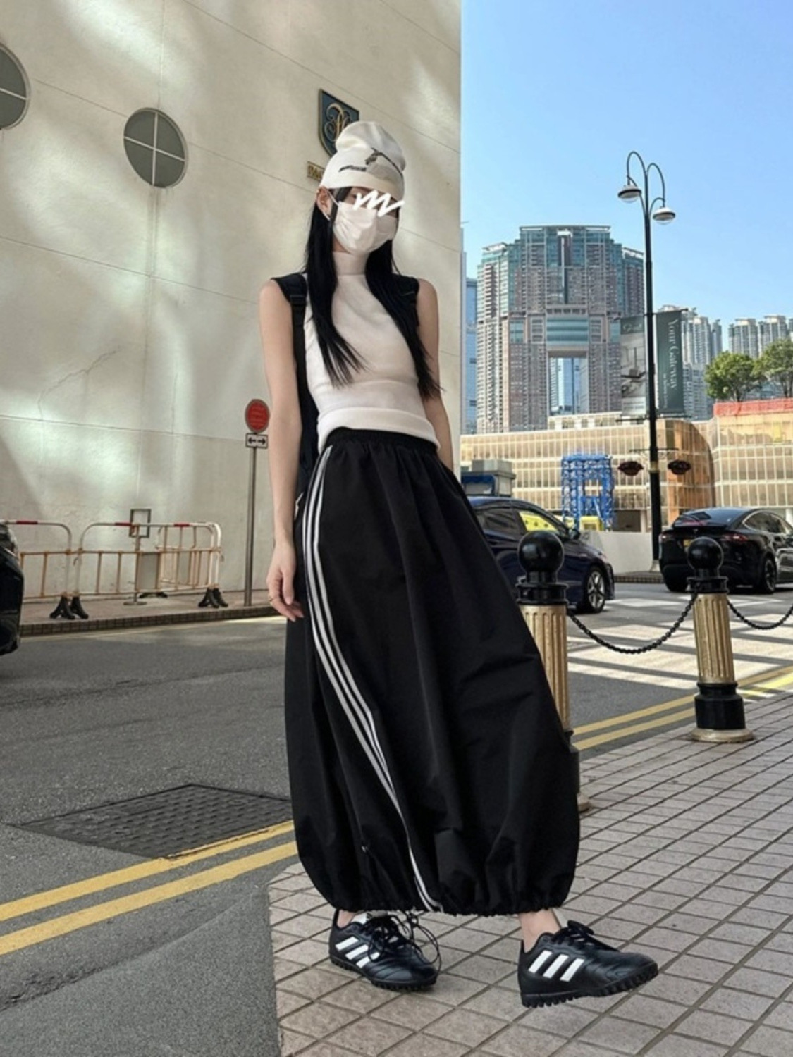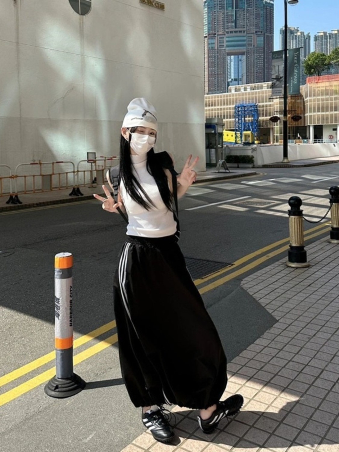 y2k American retro black cargo skirt for women loose sports casual Outline Umbrella Skirts