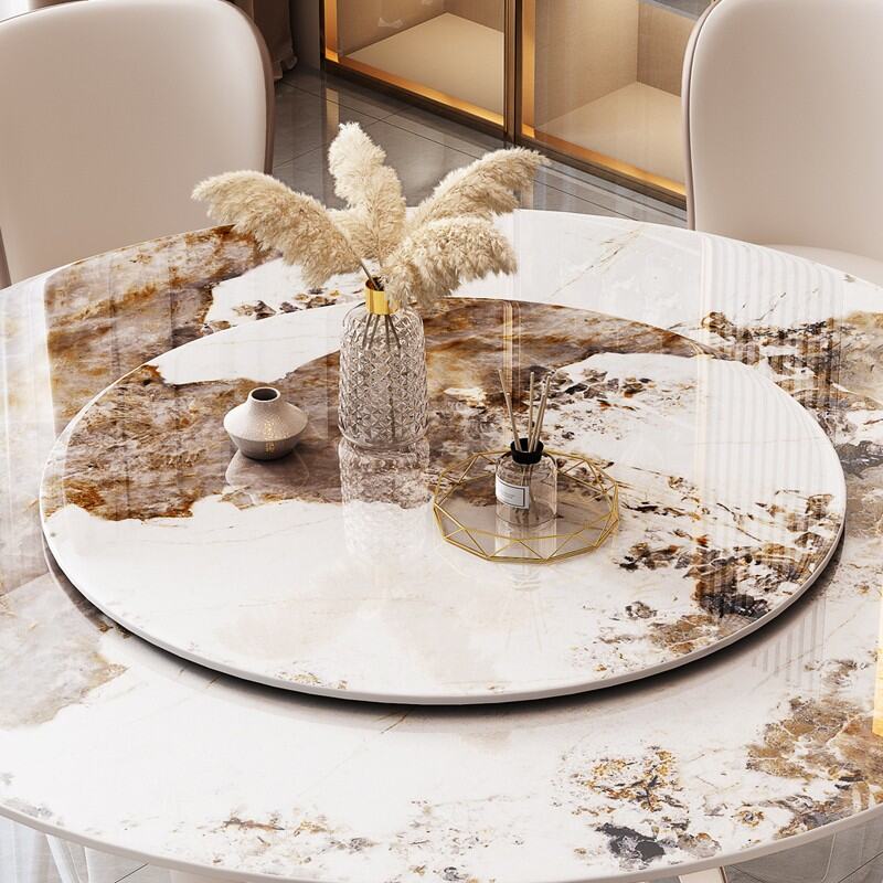Light Luxury Bright Rock Plate Dining Table Household Small Apartment round High end Combination Modern Simple round Table Dining Table with Turntable