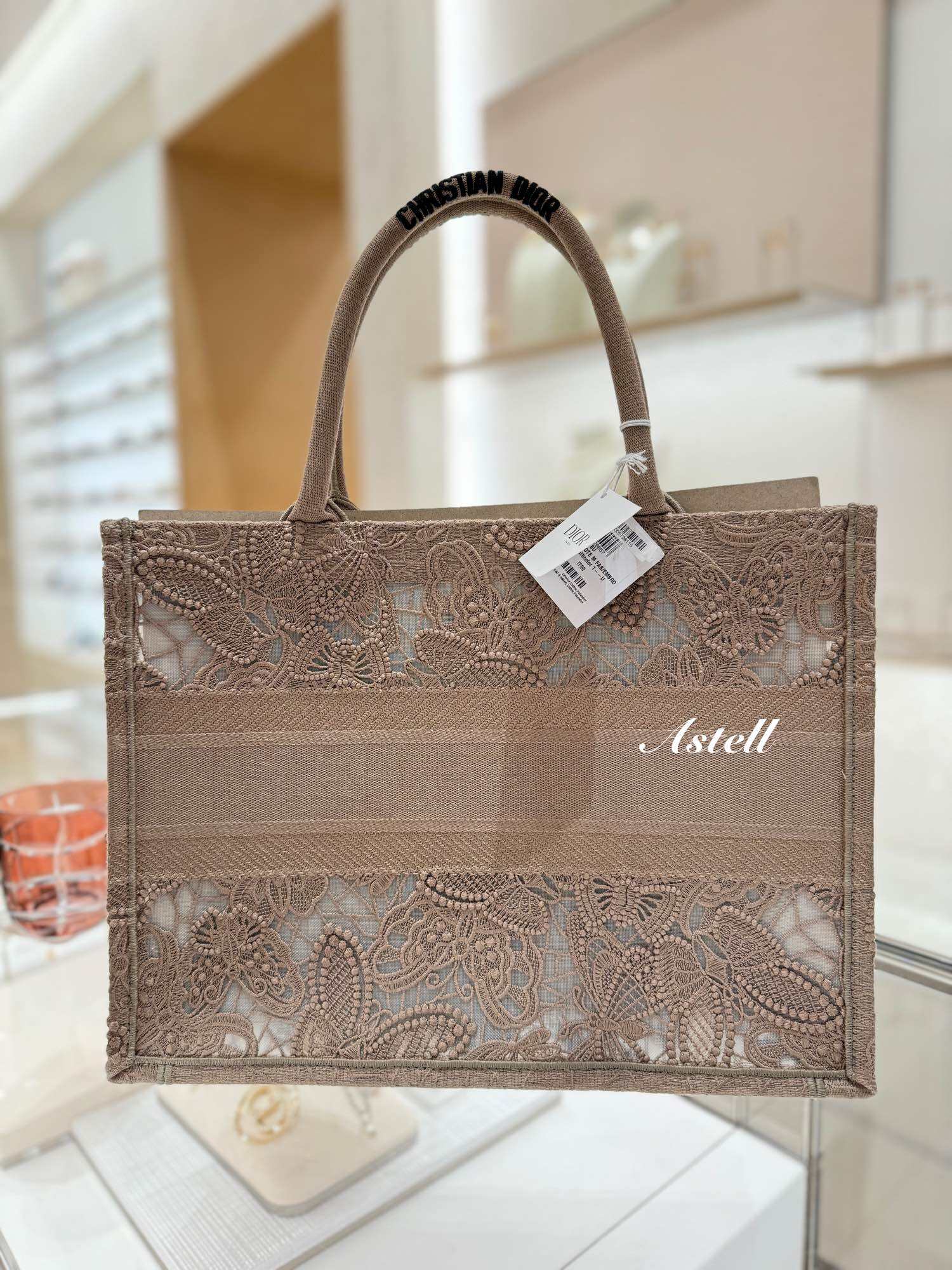 [PRE-ORDER] DIOR BOOK TOTE MEDIUM BEIGE D-LACE BUTTERFLY EMBOIDERY