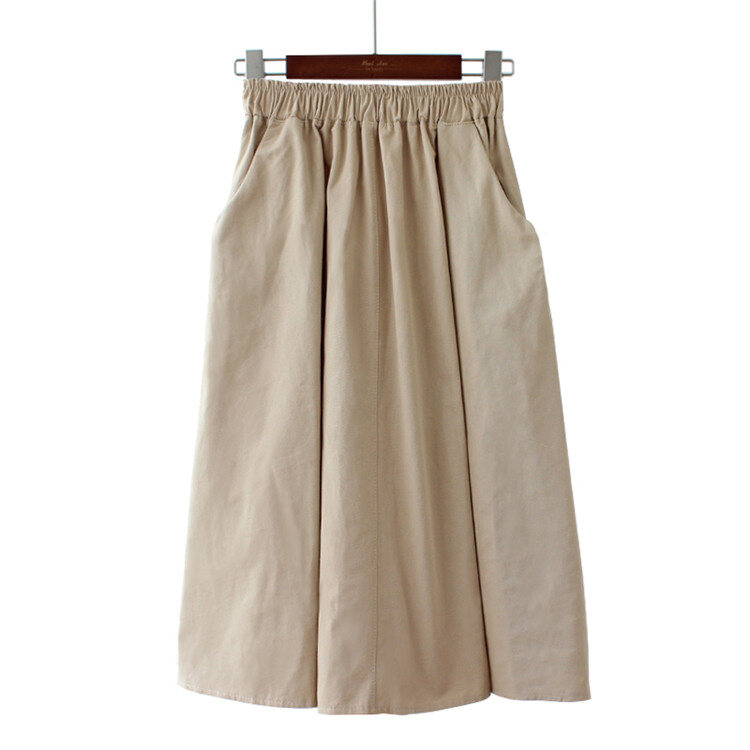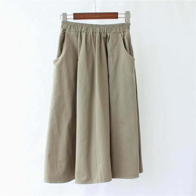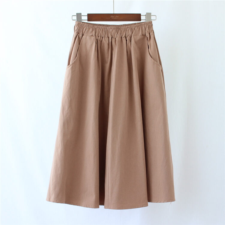 A- line Large Hem Mid Length Long Length Cotton Skirt Women's Autumn Mori Style Umbrella Skirt Solid Color Student Art Pocket Skirt Large Size