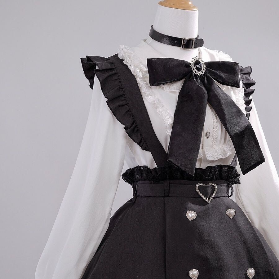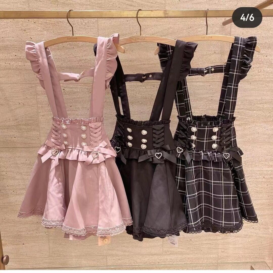 LizLisa Japanese Style Girlish Style Mine Series Mass-Produced Ribbon Bows Pearl Buckle Removable Suspender Skirt