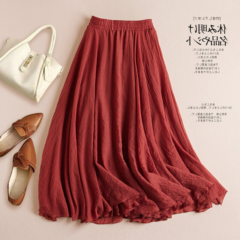 Plus Size Women's Cotton and Linen Solid Skirt Summer 2023 New Arrival High Waist Figure Flattering Flowy A- line Large Hem Long Skirt