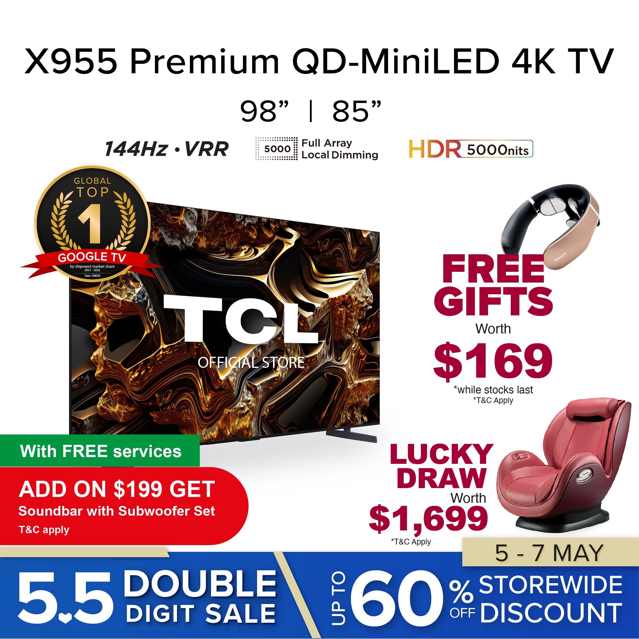 TCL X955 QD-Mini LED | 4K TV Google TV 85 98 inch | 144Hz VRR | HDR 5000 nits | Ultra Slim Design | IMAX Enhanced