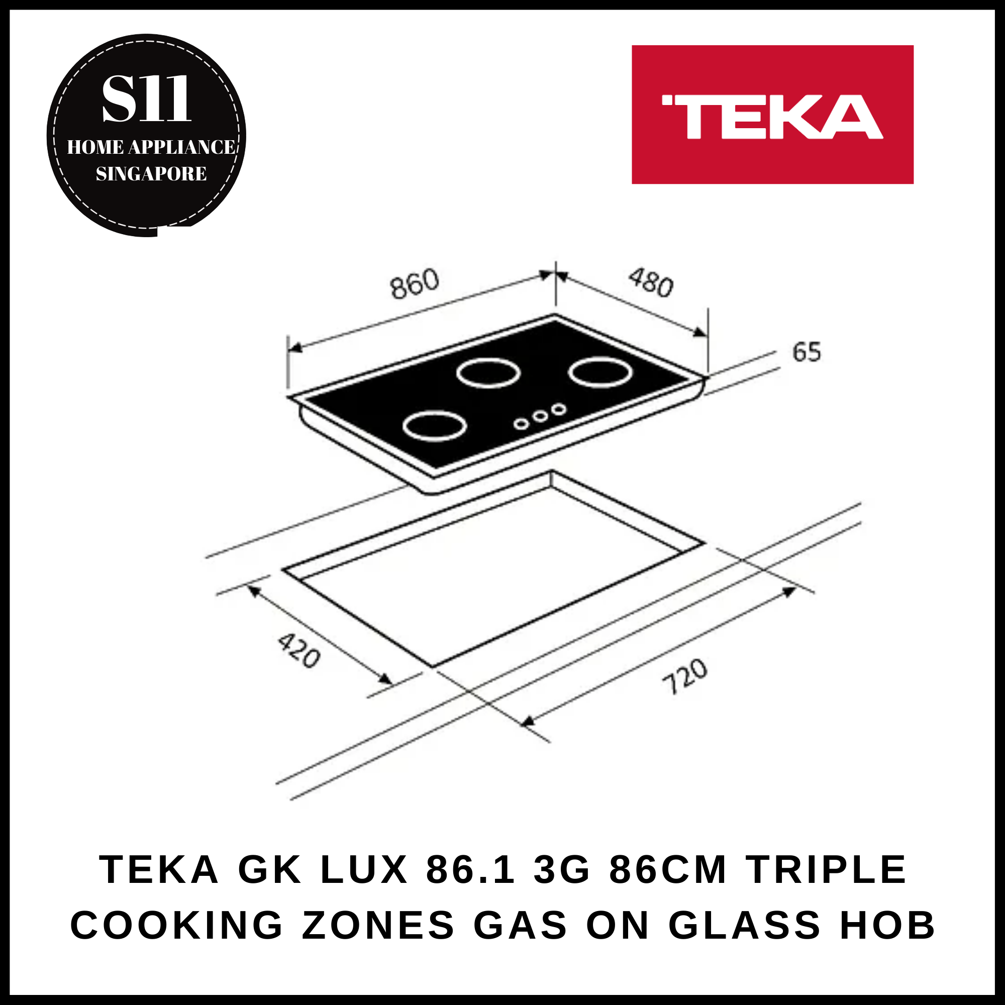* 86cm GLASS HOB