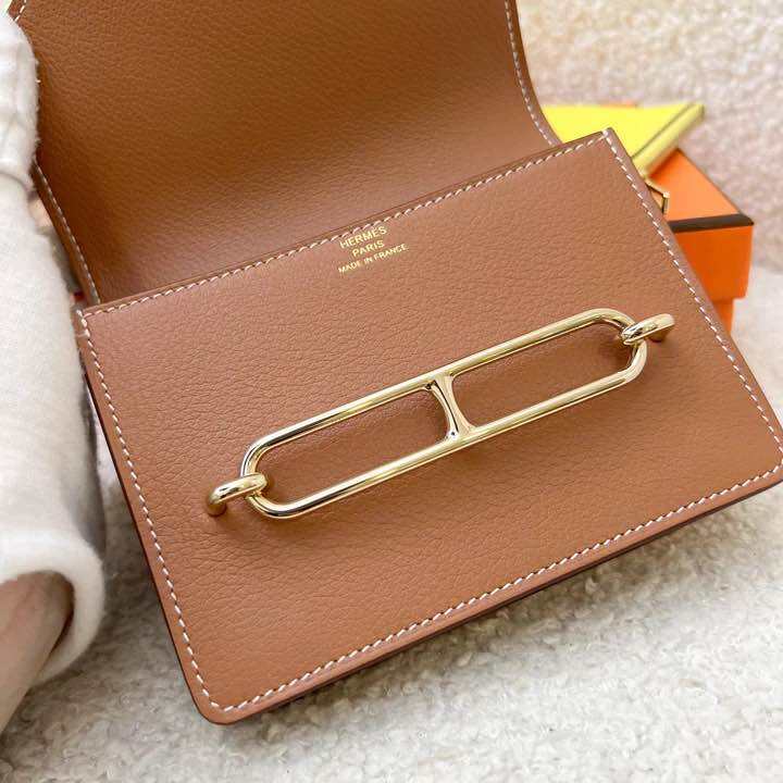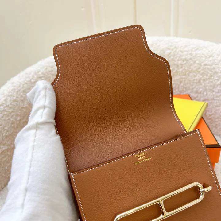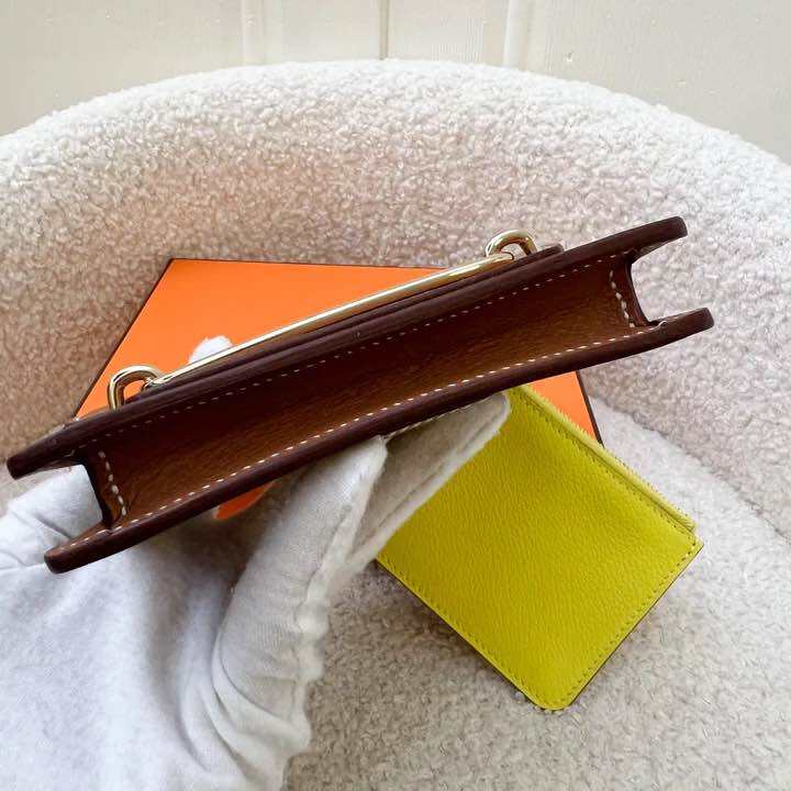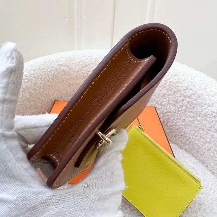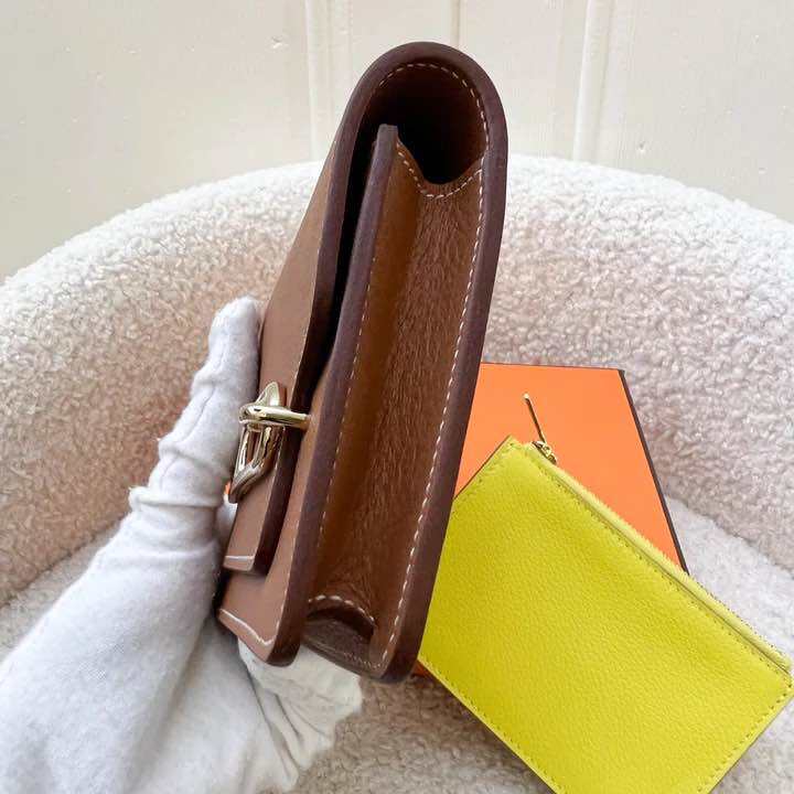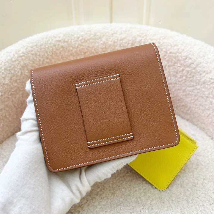 (Brand new) Hermes Roulis Slim Wallet in Gold / Lime Evercolor Leather and GHW