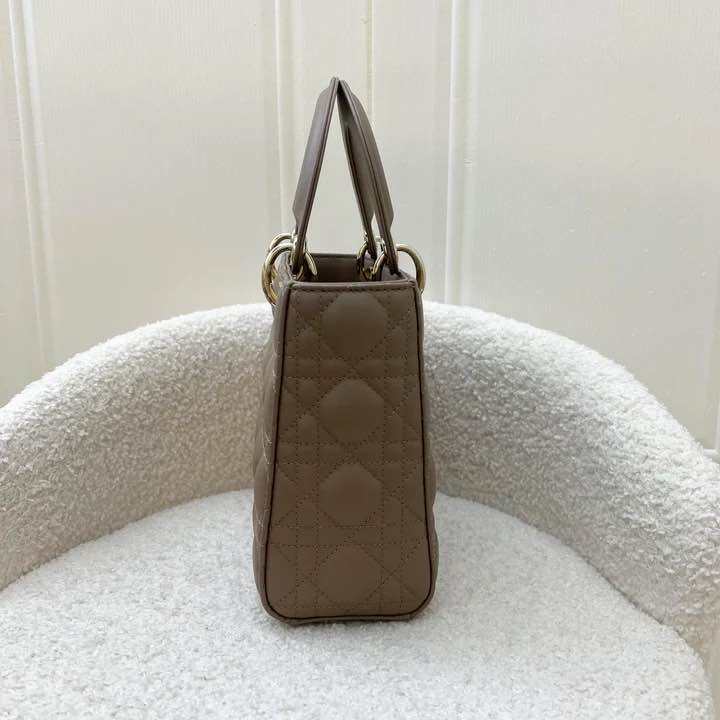 (Pre-loved) Dior Lady Dior ABCDior Small Bag in Warm Taupe Lambskin and LGHW
