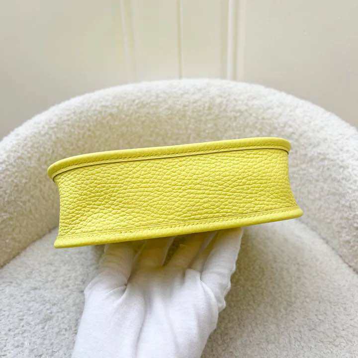 (Brand new) Hermes Mini Evelyne 16 in Limoncello Clemence Leather, Canvas Strap and PHW