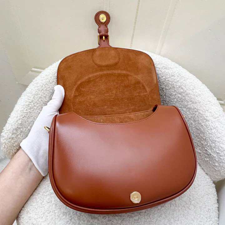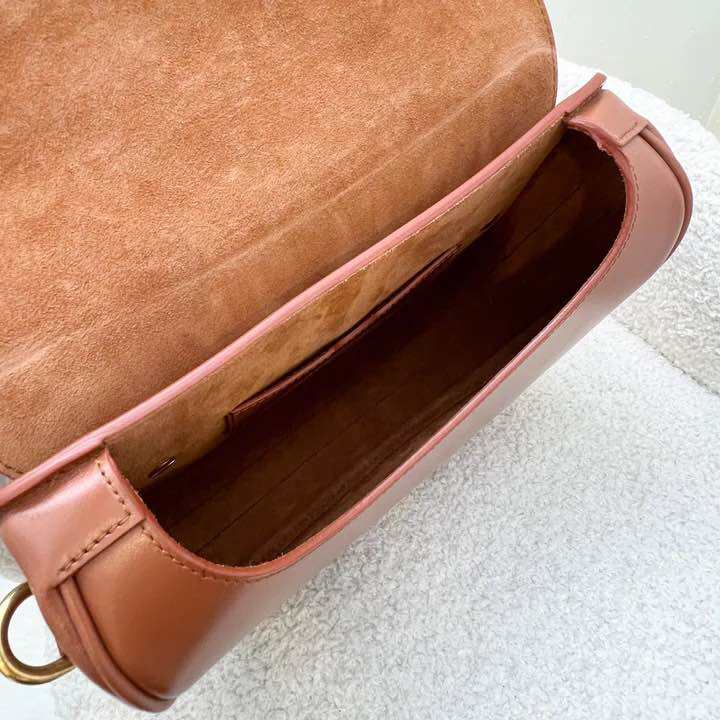 (Pre-loved) Dior Medium Bobby Flap Bag in Dark Cognac Brown Calfskin and AGHW