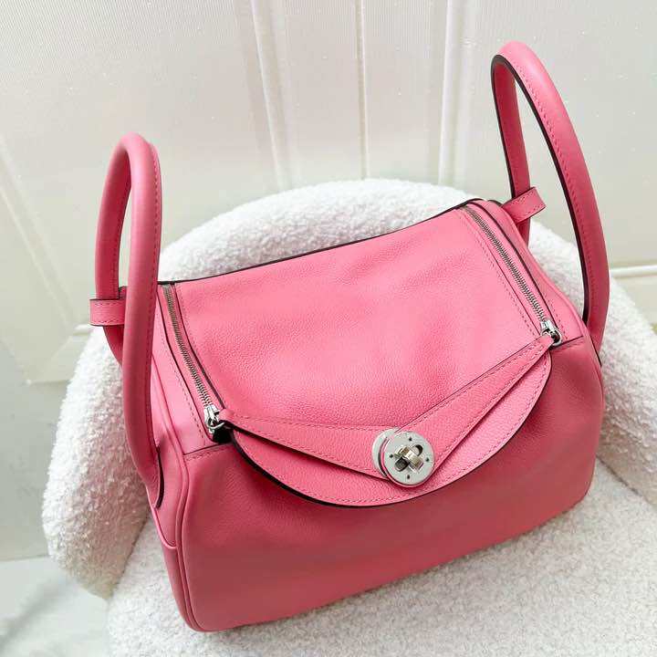 (Pre-loved) Hermes Lindy 26 in Rose Azalee Evercolor Leather and PHW