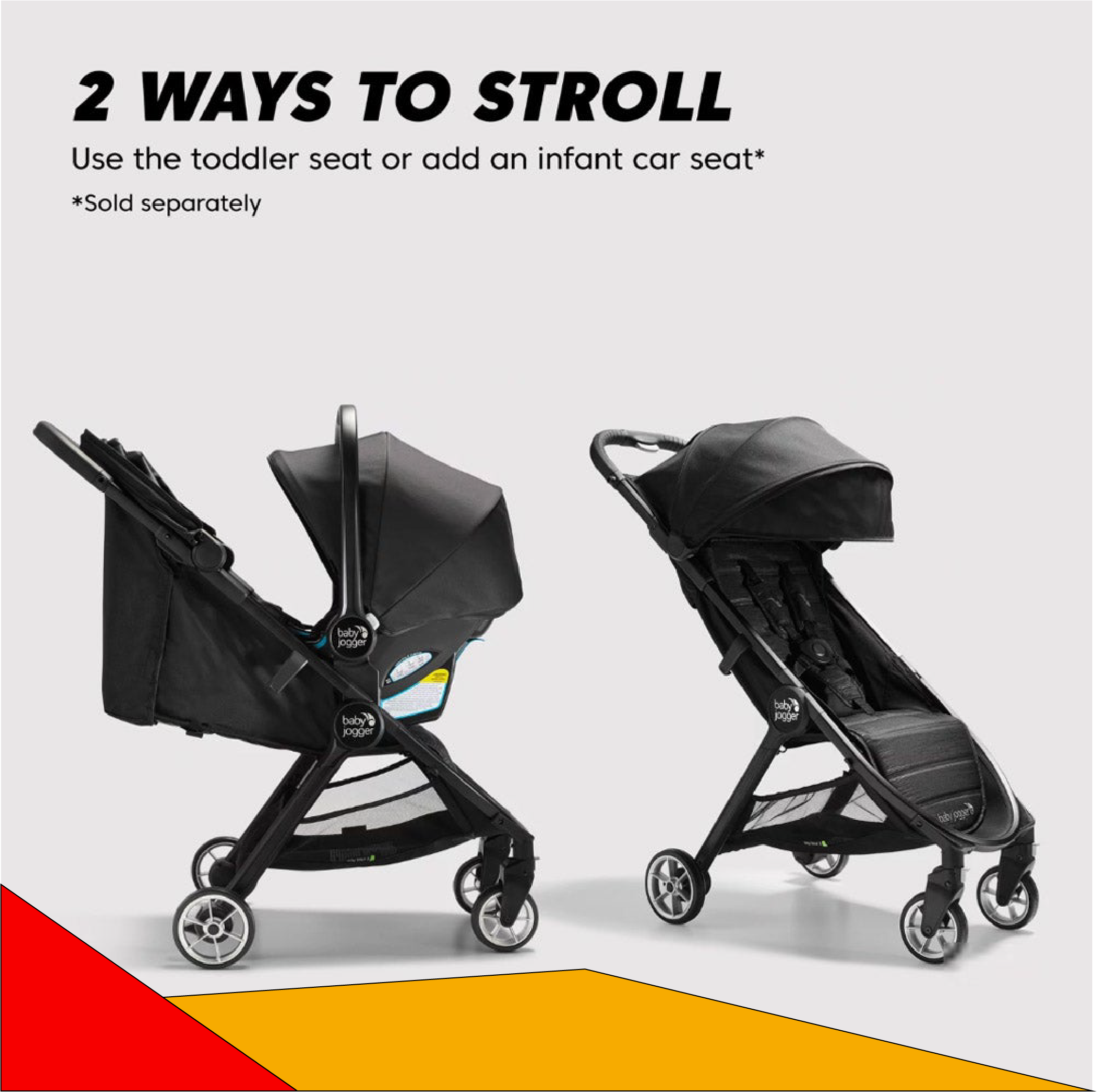 Baby Jogger® City Tour™ 2folds up small for big adventures—85% smaller than when it's unfolded. The City Tour™ 2 is the ultimate stroller for travel, with an ultra-compact, one-step fold, a weight of only 14 lb, and an included carry bag. But despite its lightness, the City Tour™ 2 doesn't skimp on features.