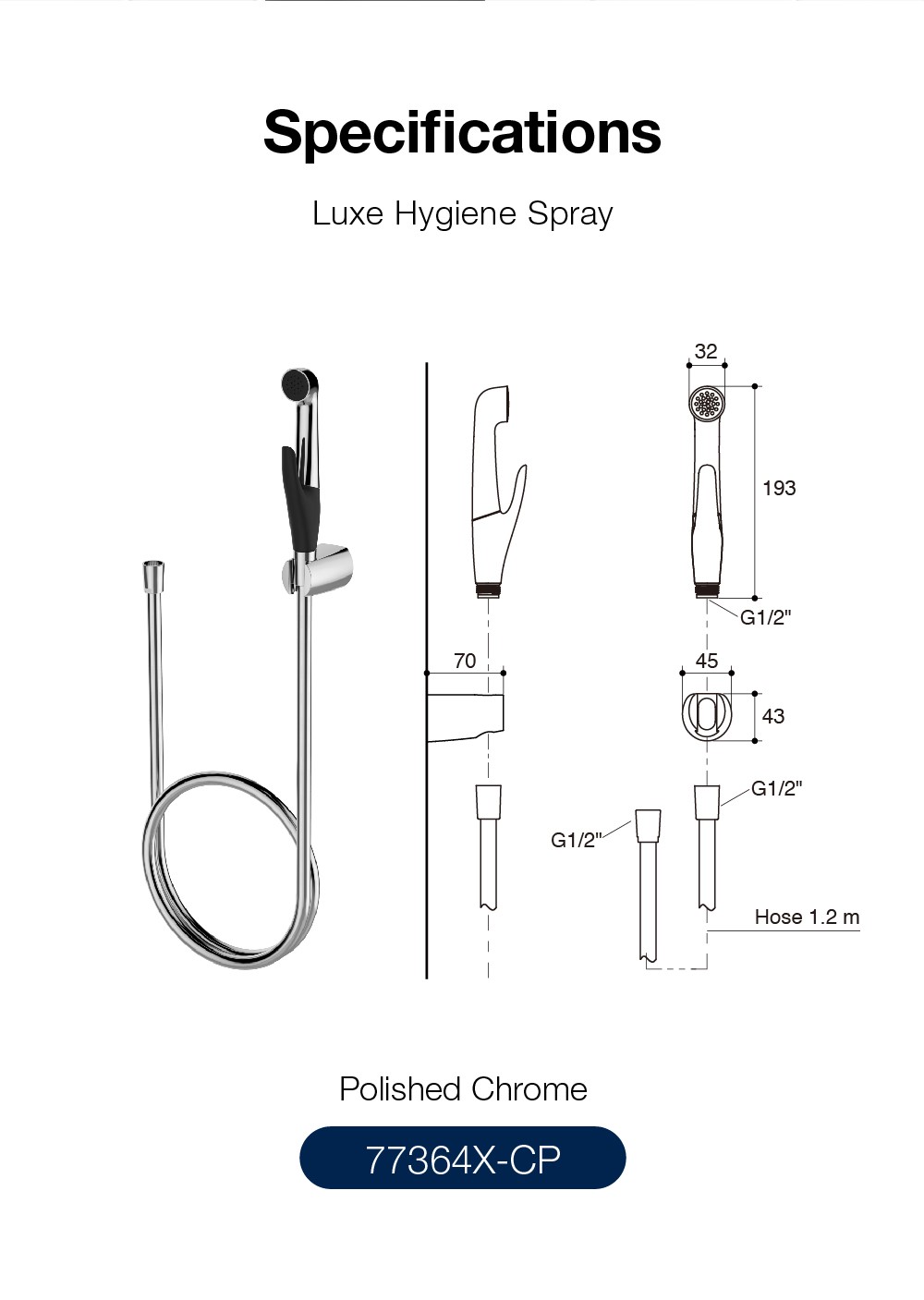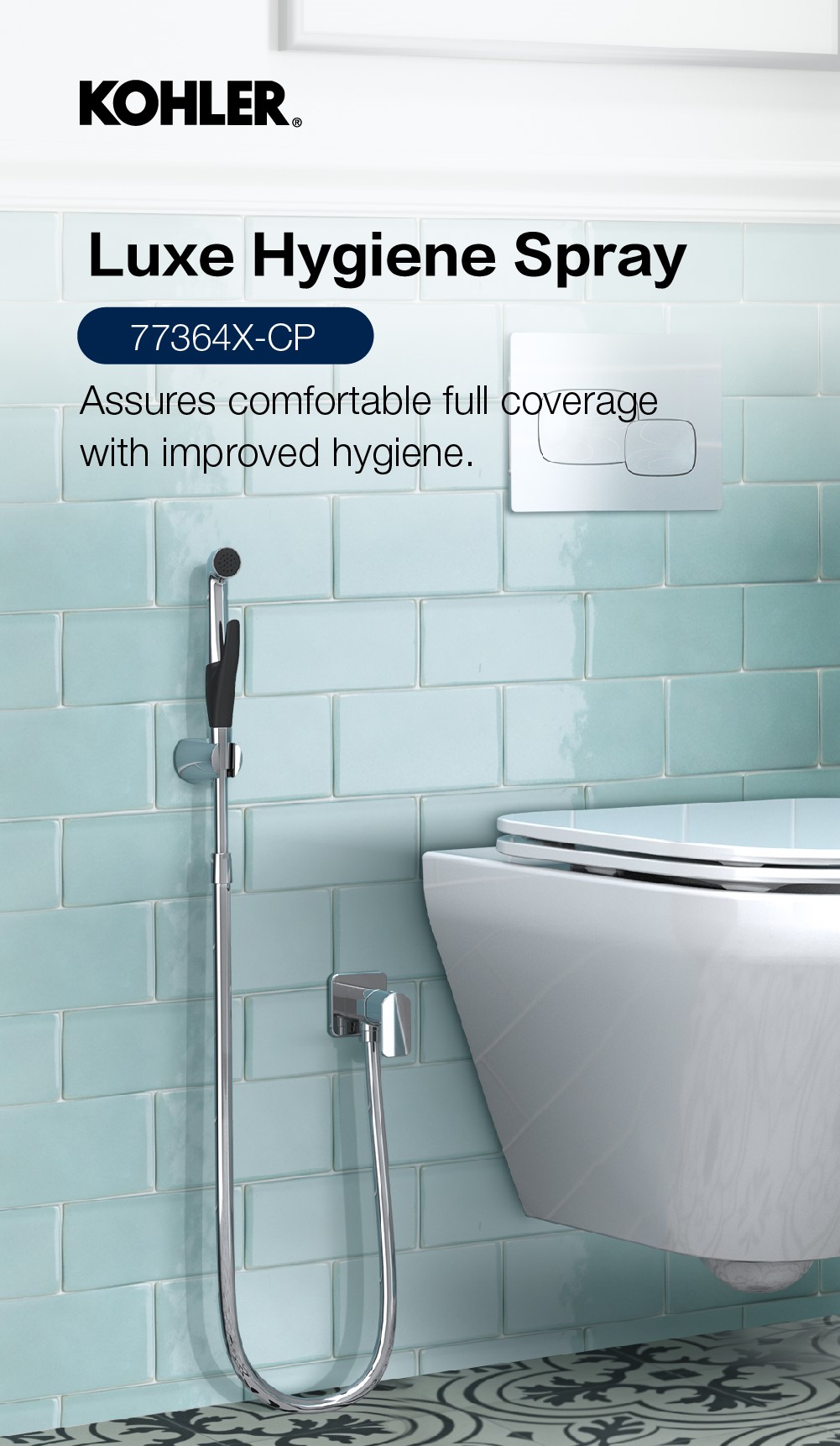 KOHLER Luxe Bidet Spray, Anti-bacterial Hygiene Spray with Wall Bracket & Anti-twist Hose, Polished Chrome K-77364K-CP
