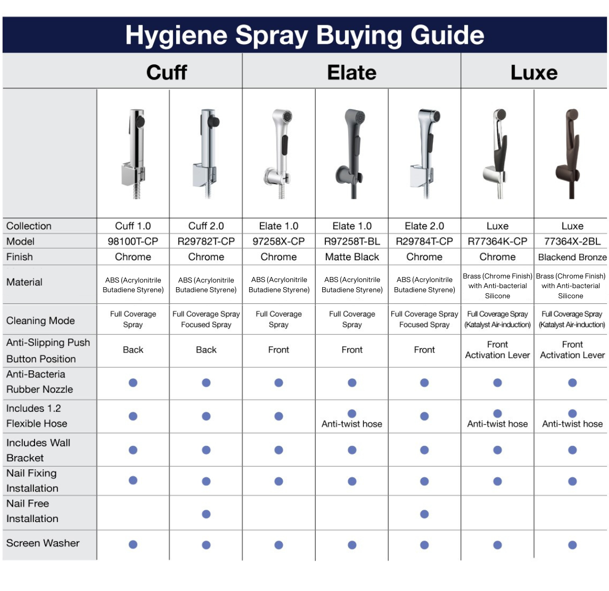 [Upgraded] KOHLER Cuff Hygiene Spray with Wall Bracket & Hose, Anti-bacterial Bidet Spray, Polished Chrome 1.0 K-98100T-B-CP / 2.0 Upgraded K-R29782T-CP