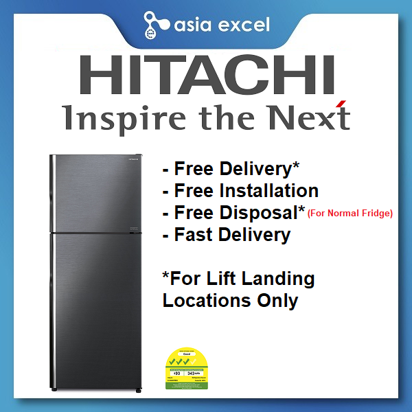 (Bulky) HITACHI R-VX450PMS9 366L BRILLIANT BLACK/BRILLIANT SILVER/PURE WHITE TOP FREEZER REFRIGERATOR