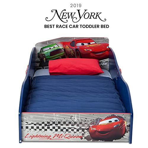 Wood Brand new lightning McQueen race car design Authentic cars decal, built with a strong and sturdy wooden frame Meets all JPMA safety requirements Some assembly required; Assembled dimensions (in inches): 28.75 W x 19 H x 53.25 L, Product weight 44.5 pounds