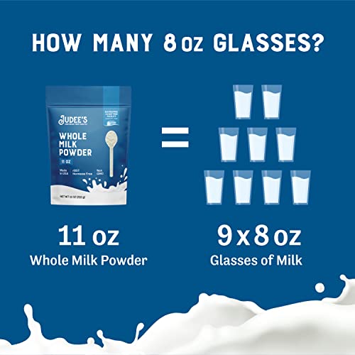 Judee's Pure Whole Milk Powder - 100% Non-GMO, rBST Hormone-Free, Gluten-Free and Nut-Free - Pantry Staple, Baking Ready, Great for Travel, Easy to Store and Shelf Stable - Made in USA - 11oz