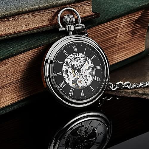 Leafed Breguet hands and Applied Roman Markers combine to create a striking display and beautiful Vintage-inspired pocket watch . Mechanical Movement The hand winding mechanical movement is gorgeously framed by a skeletonized dial and exhibition caseback. This Pocket watch Comes with a 12-inch link chain and belt hook for ease of use. Mechanical Movement:no need for batteries Just wind the crown 25 to 30 winds or until you feel resistance, every twenty four to thirty six hours. #2,375,452 in Clothing, Shoes & Jewelry ( ) #681 in