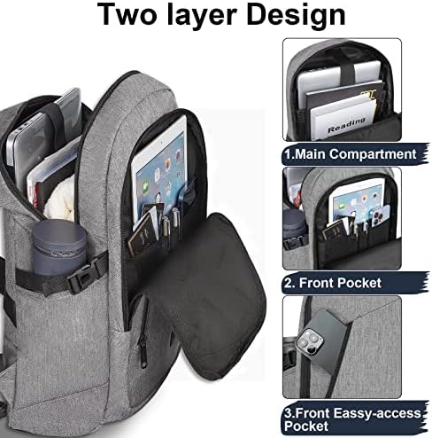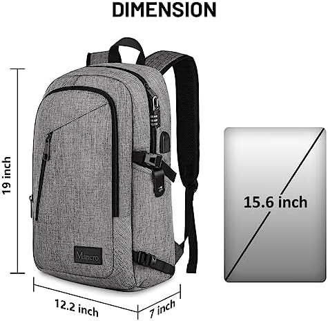 Mancro Laptop Backpack for Travel, Anti-theft Laptop Backpack for Men Business Backpack Work Daypack with USB Charging Port, Grey