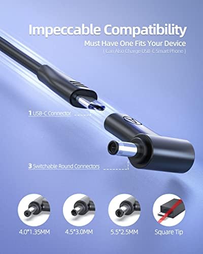 ⭐【40% Smaller】⭐ --- 40% smaller than the original one‼ Super compact & ultra lightweight, thanks to the newest charging tech GaN. ✅【Flawless Compatibility】✅ --- Exclusively designed multi-connectors (1 USB-C & 3 attachable round connectors) will fit all Asus laptop of 65W, 45W, 33W with either USB-C or round connector, and all smartphone with USB-C connector. 【Certified Safety】 --- This charger for Asus laptop charger replacement manifests top quality, workmanship & safety level as it is manufactured benchmarking UL’s safety standards, the highest electronic safety standards in the industry. 【Fast Charging】 --- This replacement Asus charger delivers same 65W power in blazing speed, with higher energy conversion, intelligent power distribution & enhanced heat dissipation. 【Worry-Free Warranty】 --- Full refund or replacement within 30 days of purchase if unsatisfied anytime for any reason. An additional 2 years warranty and dedicated customer support are right at your service.