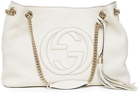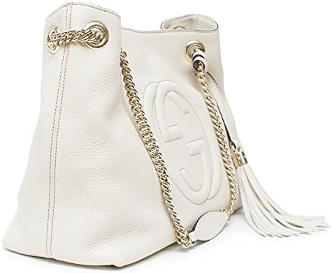 The Gucci Soho Chain Hobo Bag is a medium size shoulder bag with double chain shoulder straps. Featuring a roomy interior with pockets, detachable tassel detail, light gold hardware, and an embossed interlocking GG on front. Model: 536196 Ivory Leather Gold-tone hardware Embossed interlocking GG Detachable leather tassel Double chain shoulder straps Interior hook closure Cotton linen interior lining Strap drop: 8.75" Measurements: 15" x 5.5" x 10.6" (LWH) Includes authenticity cards and Gucci dust bag Made in Italy #4,641,633 in Clothing, Shoes & Jewelry ( ) #6,034 in