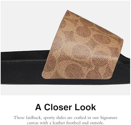Editor's Notes: A summer essential, the rubber sole on these slide sandals offers great traction on city streets and poolside Signature Canvas Upper: These laidback, sporty pool slides are crafted with a signature coated canvas upper All Day Comfort: Casual men's slides with a mesh lining and rubber footbed for all day comfort Styling Tip: Wear these house slides to elevate any athleisure outfit for low-key outings, pool days, or picking up groceries This is Coach: Having the courage to be real since 1941. Coach is the Original American House of Leather - with a legacy of craft and a community that champions the courage to live authentically