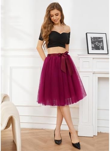 TULLE SKIRT FOR WOMEN:This women's knee-length tulle skirt is composed of 5 layers tulle and 1 layer satin lining,with one detachable satin sash. TUTU SKIRT FOR WOMEN:The high-quality tulle layer reflects the layering of the skirt, allowing the skirt to remain fluffy while showing your flexible and graceful figure.The satin underlining is soft,smooth,non-scratchy and comfortable. CASUAL/FORMAL SKIRTS FOR WOMEN:Simple,elegant and absolutely flattering,which is perfect as a modest church skirt or as a wedding guest skirt.In addition,it hung and swayed very nicely,which is super cute and fun,definitely popular in any party,prom,dance.Even as a work or daily life wear, it can also bring out your femininity. BRIDESMAID SKIRT:This tulle skirt is light and breathable, it won't make you feel hot even wearing it in summer.And it's a veritable all-match,can be styled in so many ways. IDEAL FOR All OCCASIONS:Photo Shoot,Church,Halloween Costume,Bridal Shower,Bachelorette Party,Disneyland Costume,Holiday Event,Fairy Skirt,Family Reunion,Wedding Guest,Concert,Party,Prom,Wedding,Tea Party,Birthday Skirt,Anniversary,Engagement Photo,Maternity Skirt,Cocktail Party,Date,Princess Skirt,Play,Dance performance,etc #38,673 in Clothing, Shoes & Jewelry ( ) #159 in