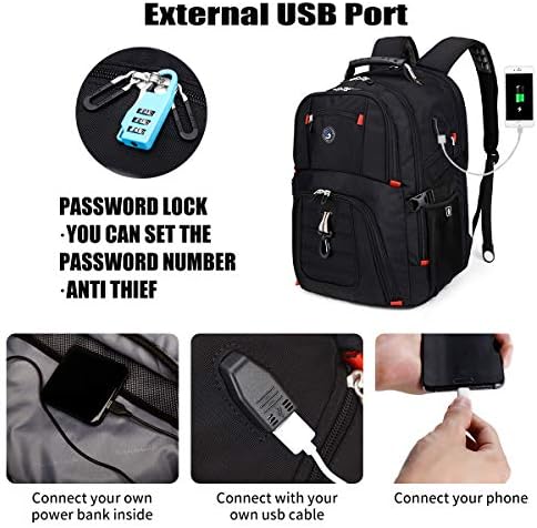 SHRRADOO Extra Large 52L Travel Laptop Backpack with USB Charging Port, College Backpack Airline Approved Business Work Bag Fit 17 Inch Laptops for Men Women,Black