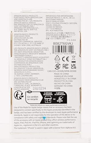 APPLE MFi CERTIFIED: Ensures complete compatibility with iPhone 14/13/12/11/X/XR/XS/8/7/6/6s/5/5s/5c, iPhone Pro 14/13/12/11, IPhone Pro Max 14/13/12/11/XS, iPhone Plus 14/8/7/6/6s, iPhone SE 1st Gen/2nd Gen/3rd Gen, iPhone mini 13/12, iPad Pro 10.5 in/9.7 in, iPad Air 3/2/1, iPad mini 5/4/3/2/1, iPad 9th Gen and older, iPod Touch 5th Gen and older, iPod nano 7th Gen and Beats Pill+ IN THE BOX: Amazon Basics Lightning to USB-A Cable for charging and syncing devices. Comes with Apple's original C89 smart chip FAST CHARGING: Wide-diameter wires and reduced cord resistance maximize charging speed (supports up to 2.4 amps charging current) HIGH SPEED DATA TRANSFER: Up to 480Mbps for transferring music, movies, and more in seconds DURABLE DESIGN: An additional layer of protection has been added to the Lightning and USB ends to improve durability and reduce fraying SECURE FIT & ADDED PROTECTION: Sturdy unibody connectors resist damage while ensuring a secure fit with every insertion