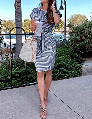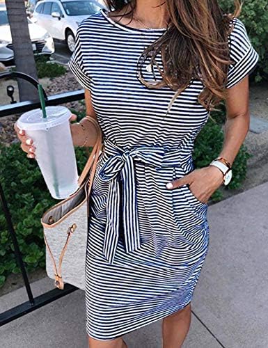 Size Guide: S=US 4-6, M=US 8-10, L=US 12-14, XL=16. Lightweight and soft fabric, we accept 30 days money back! Unique Design: sheath dress with two side pockets, crew neck, about knee length, slim fit self tie belted waist, classic stripes, soft and stretchy cotton blend dress. This is a great comfortable dress, nice enough for business casual work and light enough the summer beach! Super cute and comfortable, flattering on any body shape. Belt waist, you can tie it in the front, side or back. Perfectly highlights your curve and show your body charm. The side pockets on each side for a practical and chic look! Not see through at all. Simple yet classy cute dress. Occasion: Casual, daily life, party, homecoming, evening activities, business office, easily dress up or down. It's a stylish look for pairing with berets in the winter or hats on a breezy spring summer day! Washing Instruction: Machine washable, hand wash cold, air dry, low iron if needed.