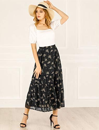 Loose Fit, Calf-Length, Floral Print, Ruffle Ruched, Loose Flare Hem, Elastic High Waist, Pleated Detail, Fully Lined Skirt Versatile floral skirt for daily casual style, or eye-catching piece as a chiffon skirt. Occasion: Suitable for weekend, daily wear, shopping, dating, brunch, holiday, trip, etc The position of the flower pattern will be a little different in each piece, because of the cutting, especially the large flowers, the display is different Styled with Crop Top or Basic Tee and heels to finish the look. Machine Wash Cold with Like Colors, Low Iron, Do Not Bleach or Drying Designed skirt length: Ankle Length. Hemline falls Below Ankle for 5’1’’/At Ankle for 5’4’’/Above Ankle for 5’8’’. Model is wearing in size XS (Height: 5'8", Weight: 115.5 lbs, Waist: 24 inches, Hip: 35 inches). Please Check the Garment Measurement Size Chart below before ordering #38,360 in Clothing, Shoes & Jewelry ( ) #176 in